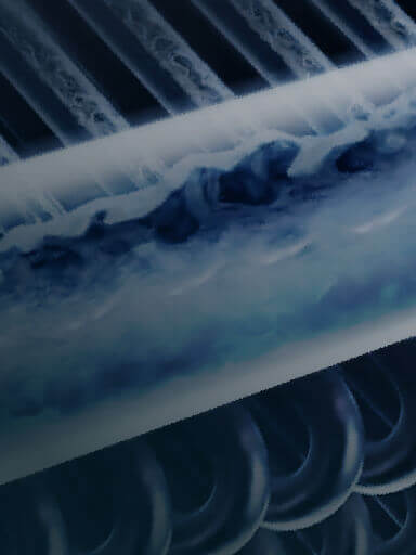 利用氣流引導水流均勻貼附於盤管表面,降低乾點,持續保持盤管濕潤,減少盤管外水垢堆積 3~10%,並增加2倍有效散熱面積。