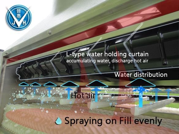 - Patented Feature The L-type water cover quickly expels hot air and prevents large droplets from being carried out by the fan, aiding in water conservation.